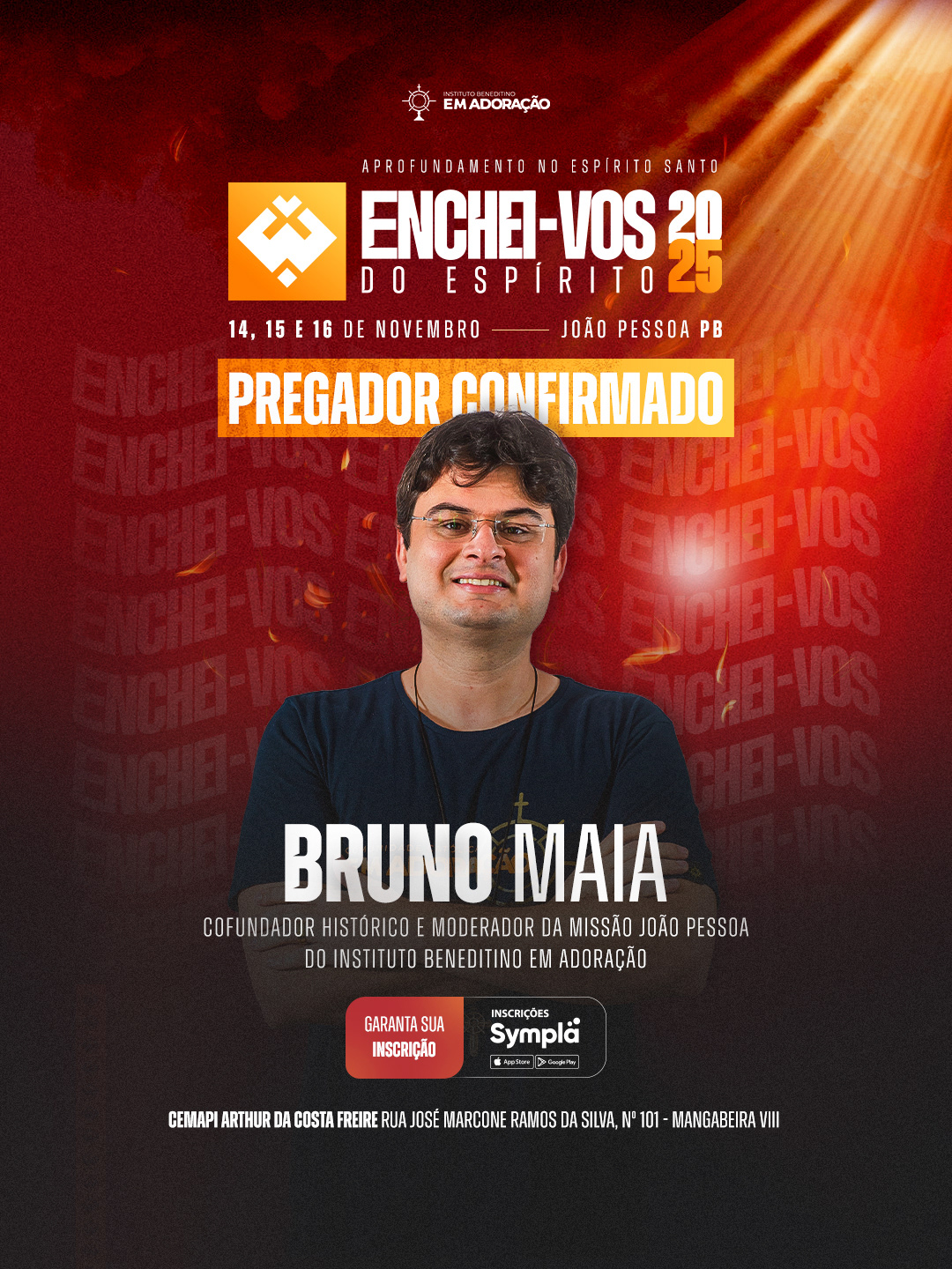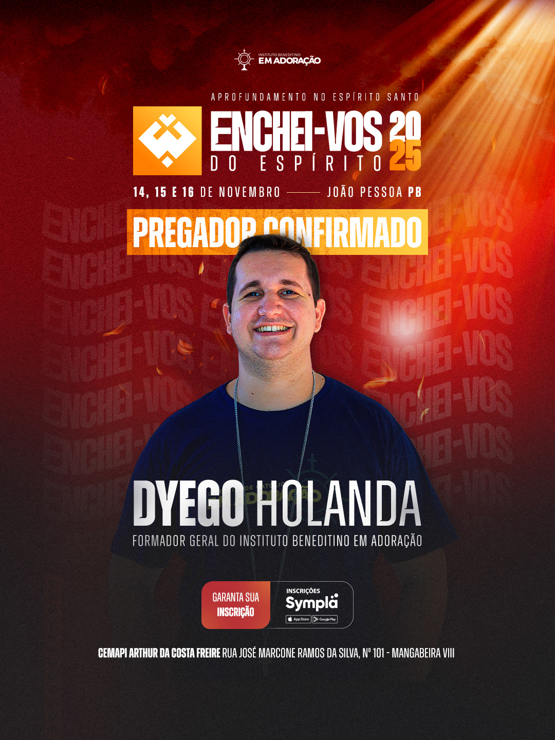 Enchei-vos do Espírito Santo é um encontro que acontece desde 2014, reunindo pessoas que desejam renovar a fé e aprofundar a intimidade com Deus. São três dias de oração, formações, Santa Missa e Adoração que conduzem o participante a um verdadeiro batismo espiritual, despertando o desejo de viver guiado pelo Espírito em todas as áreas da vida. Realizado pelo Instituto Beneditino Em Adoração.