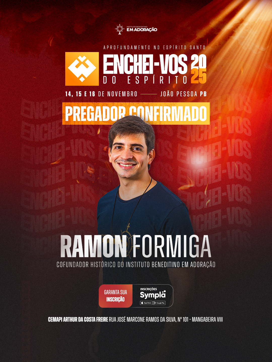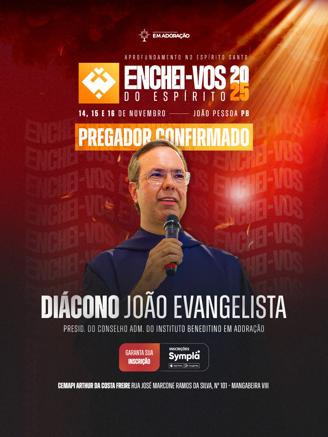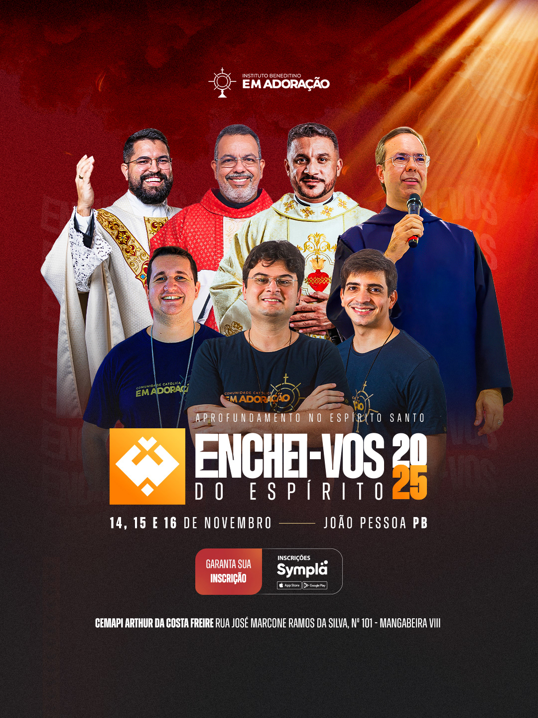 Enchei-vos of the Holy Spirit has been held since 2014, gathering people who seek spiritual renewal and deeper intimacy with God. Over three days of prayer, teachings, Holy Mass, and Adoration, participants experience a true spiritual awakening, learning to live guided by the Holy Spirit in every area of life. Organized by the Instituto Beneditino Em Adoração.