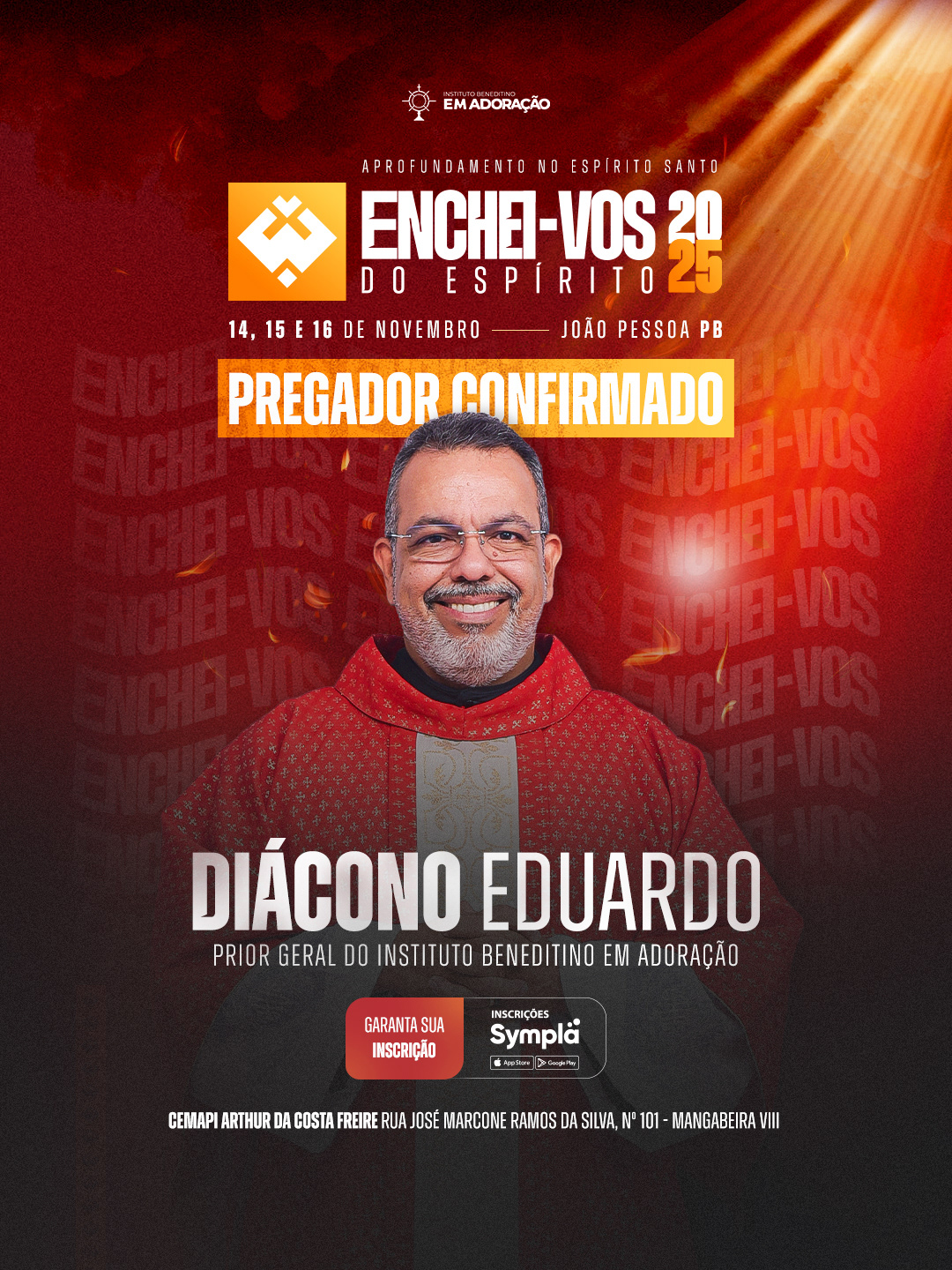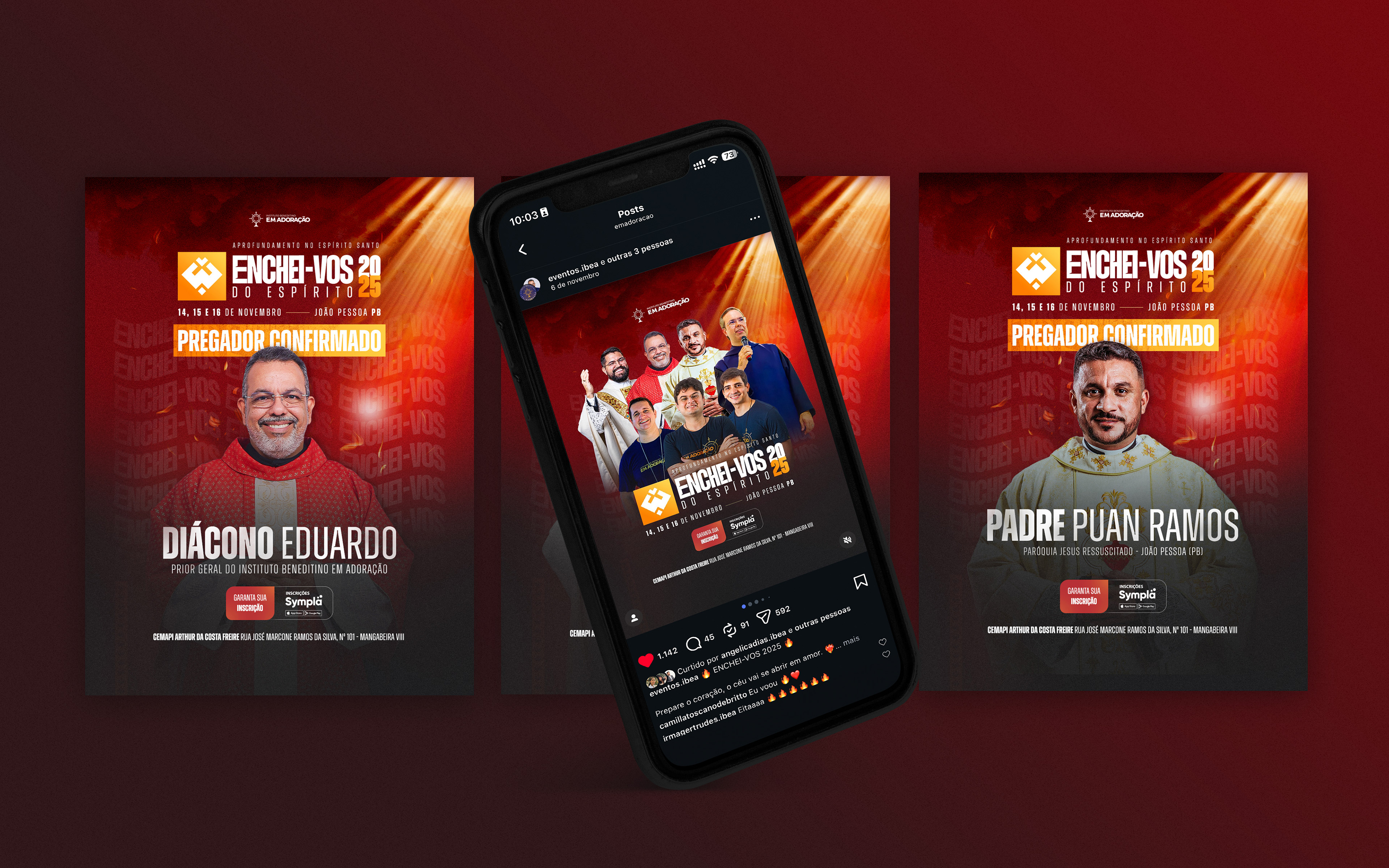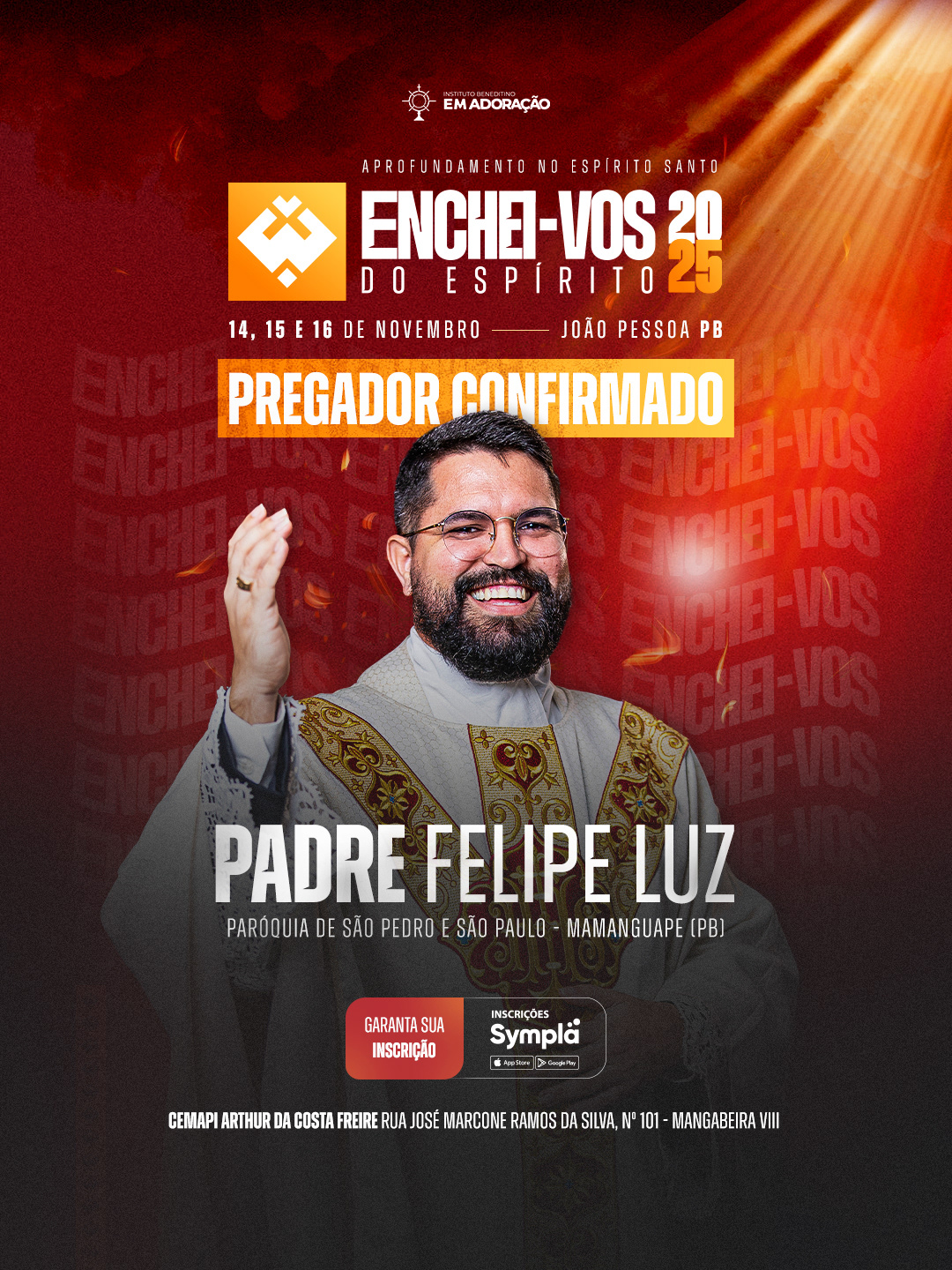 Enchei-vos of the Holy Spirit has been held since 2014, gathering people who seek spiritual renewal and deeper intimacy with God. Over three days of prayer, teachings, Holy Mass, and Adoration, participants experience a true spiritual awakening, learning to live guided by the Holy Spirit in every area of life. Organized by the Instituto Beneditino Em Adoração.